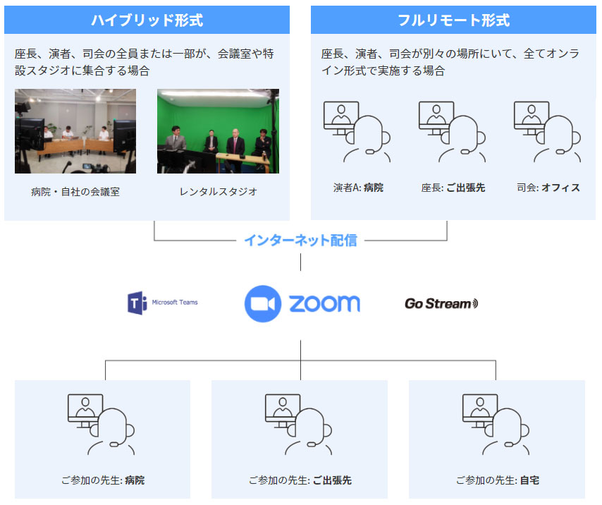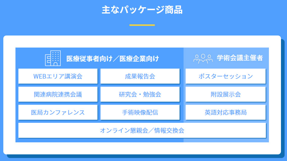 For limited attendants, with the distribution system and registration reception! WEB lectures and online conferences! Two types, "made-to-order" and "typical package". We support online meetings in the product menu.
